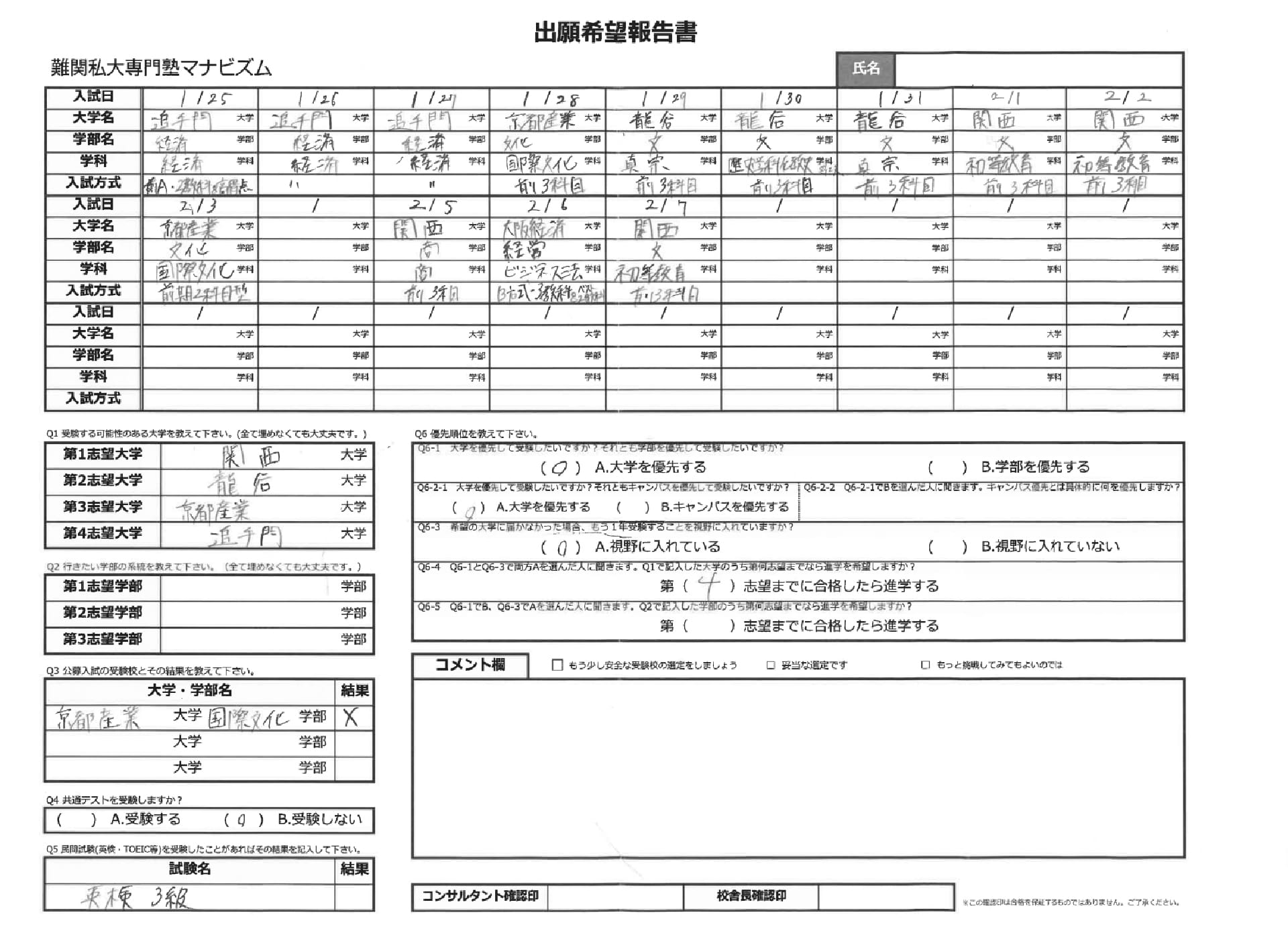 英検2級対策と関関同立受験対策を両立